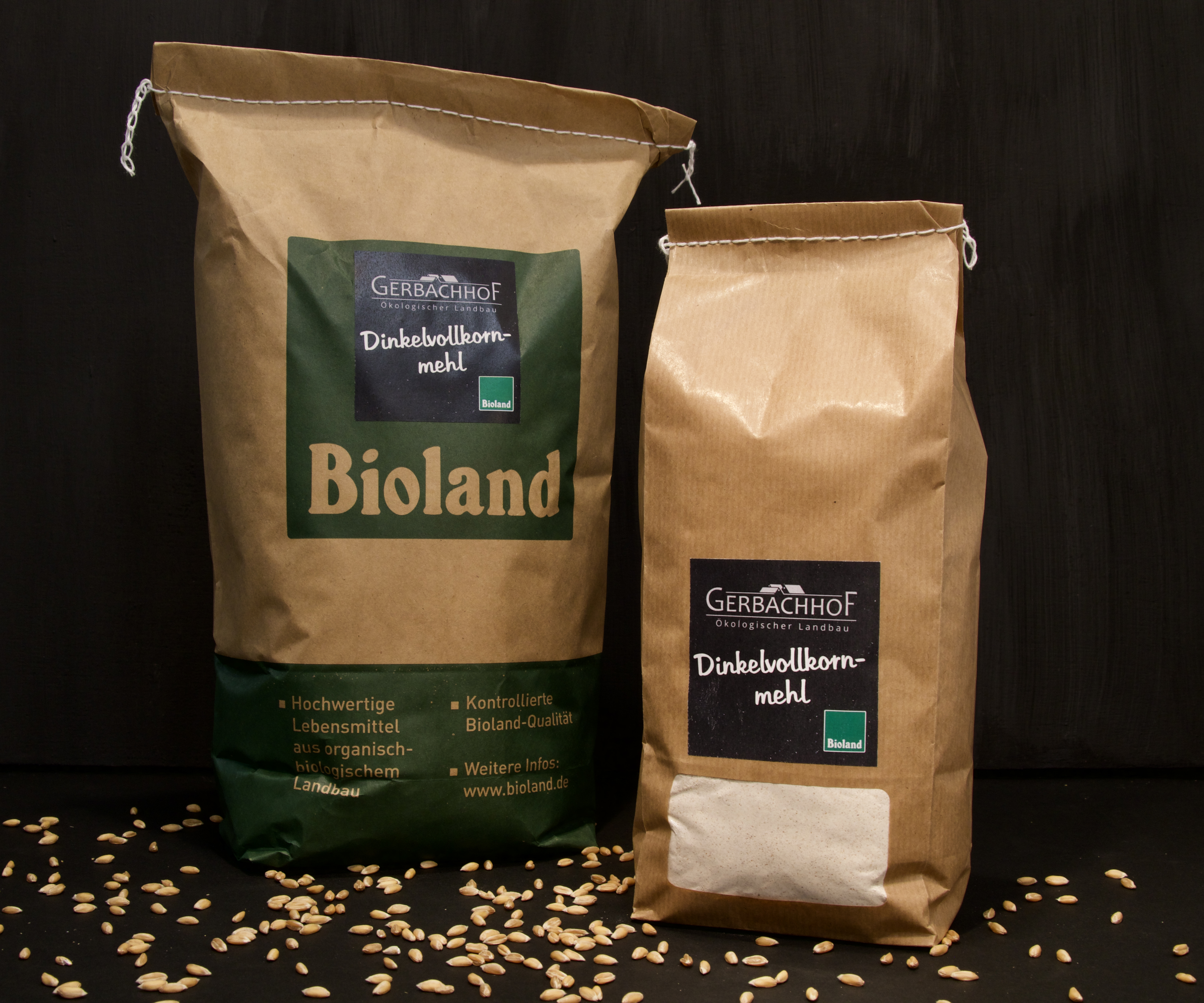 Wir bauen verschiedene Getreidesorten an, unteranderem Dinkel, Weizen und Roggen. Diese bieten wir als Korn als auch als Vollkornmehle an.