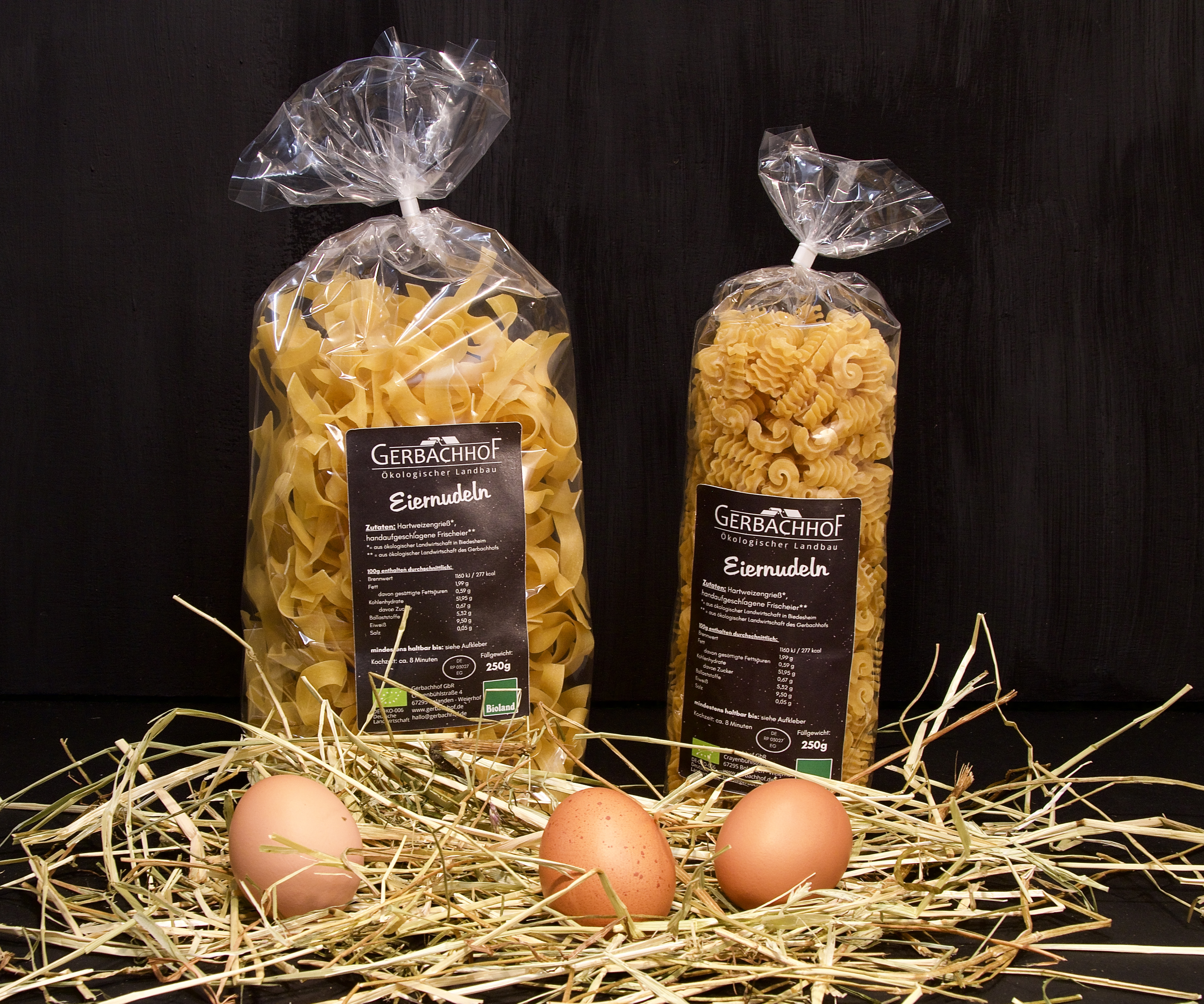 Aus regionalem Bioland-Hartweizengrieß und unseren Eier lassen wir leckere Eiernudeln herstellen.