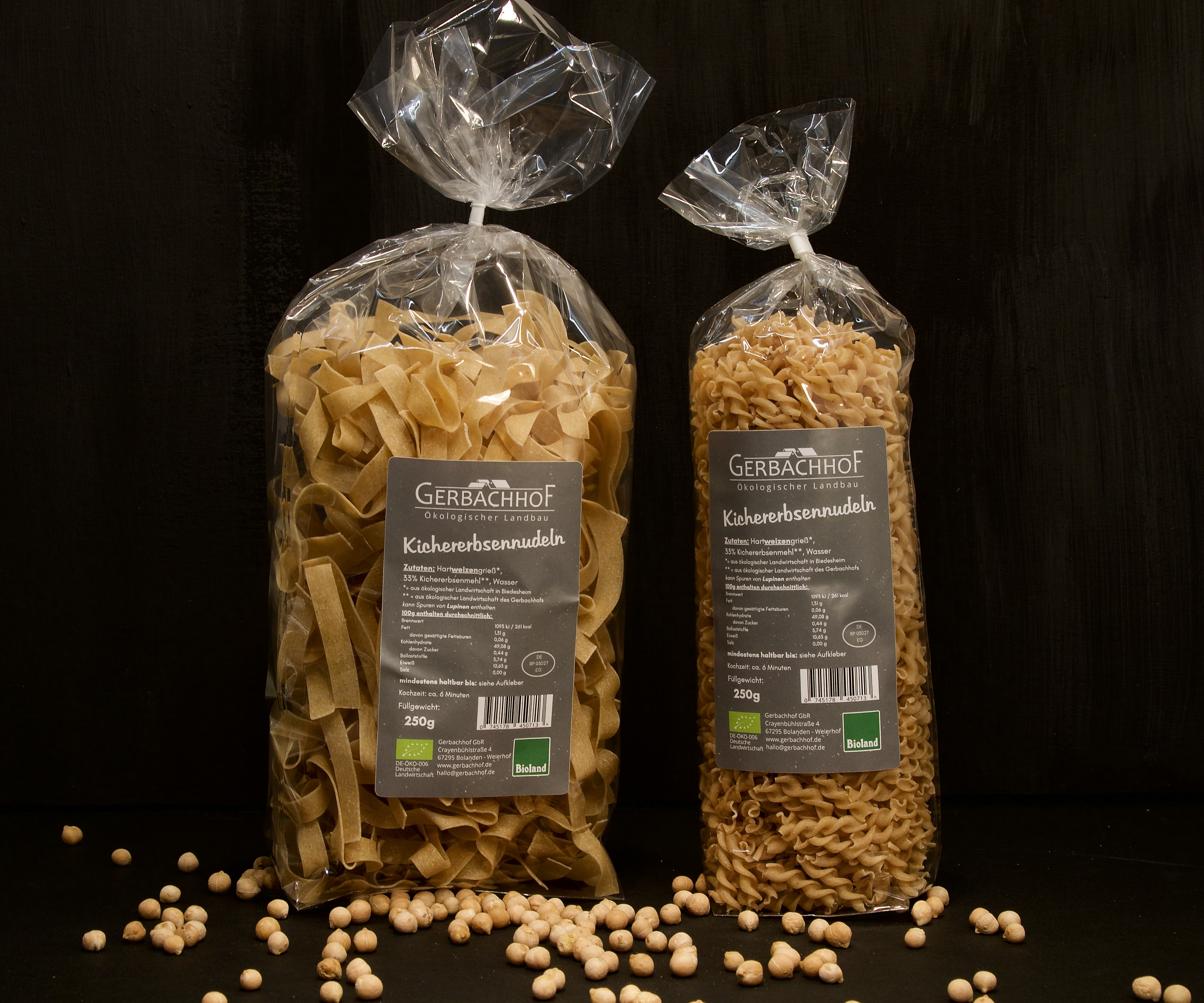 Die vegane Nudelvariante des Gerbachhofs enthält ein Drittel Kichererbsenmehl und zwei Drittel Hartweizengrieß.